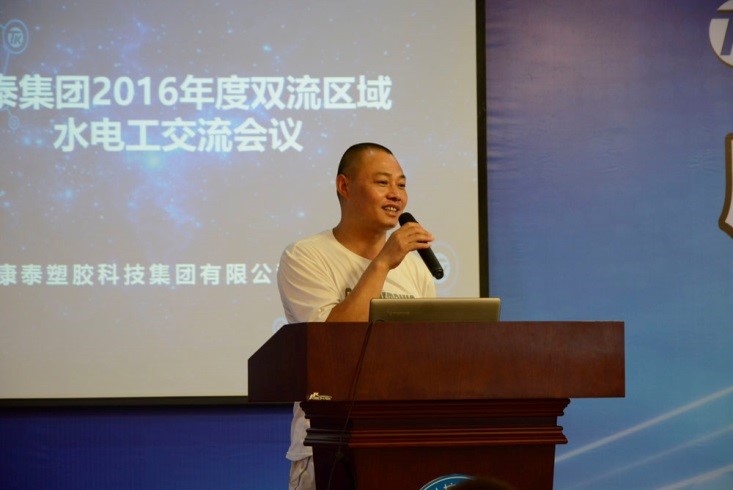会议最后,市场总监郑光铧作了总结讲话。郑总首先对广大水电工们一直以来为美丽双流建设所作出的贡献表示了感谢,他表示,最近三年乃至今后十年,中国发展最好时期已经过去,家装产能已经严重过剩。作为一家有着近20年的管材制造和销售经验的企业,康泰的品牌有知名度、产品质量有保障、价格也更实惠,康泰也将不断的完善和建设品牌,提升产品卖点,康泰有这个决心和能力,用三到五年,把经销商和水电工的利益保障好,康泰也将对产品质量负责到底,建立业主对你们的信任,实现你们的收益。