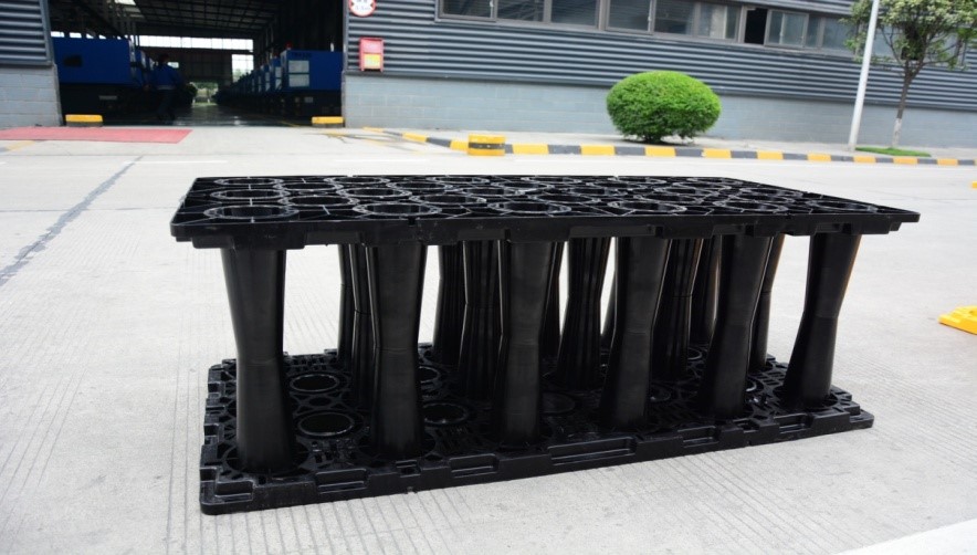 生态MPP蓄水模块由改性聚丙烯PP材料注塑而成,模块单元孔隙率>95%,高程度蓄水,独特的外观和结构,具有超强的抗压能力,根据地形及雨水量,可组合成不同形状。且具有生态环保、可循环利用、耐腐蚀性、质量轻、抗压好、环保性好、耐候性好、寿命长、安装运输方便的优点。