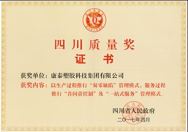 康泰塑胶科技集团荣获第四届“四川质量奖”